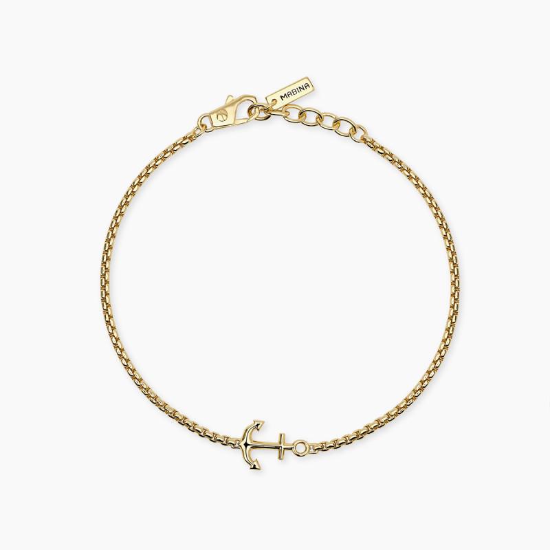 Descrizione: Bracciale in argento 925 e placcato oro 18K con catena veneta 2 mm ed elemento ancora 13.7x9.5 mm, lunghezza regolabile da 18.5 a 20.5 cm