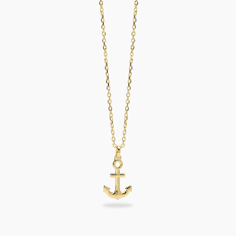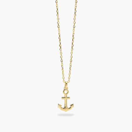 Descrizione: Collana in argento 925 e placcato oro 18K con catena forzatina 1.5 mm e pendente ancora 11.1x16 mm, lunghezza regolabile da 45 a 50 cm