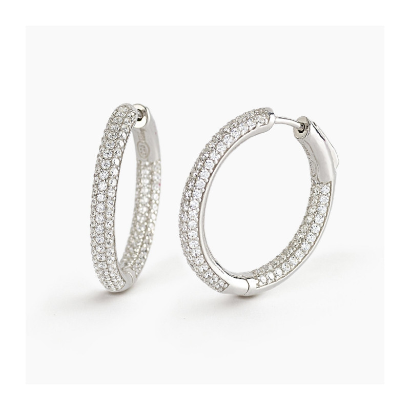 Descrizione: Orecchini a cerchio in argento 925 con pavé in zirconi - diametro 24 mm