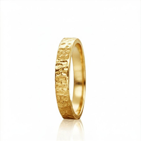 Descrizione: fede nuziale in oro 750/1000 (18kt) - peso g 5,00 ca - larghezza 4,0 mm - finitura: martellatura artigianale irregolare