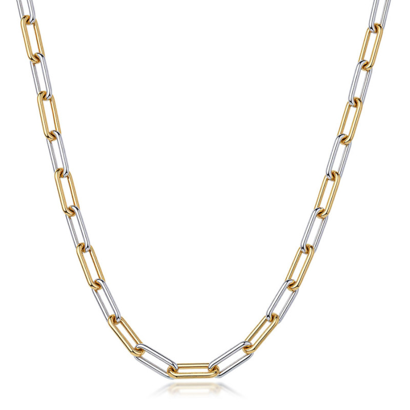 Descrizione: Collana in acciaio 316L, finitura pvd colore oro, con elementi ovali incrociati