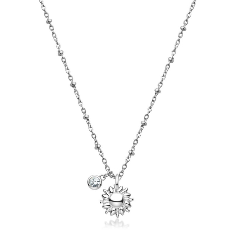 Descrizione: Collana in acciaio 316L e/o pvd oro, con pendente sole e cristallo