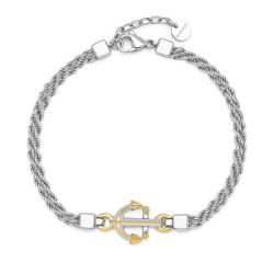 Descrizione: Bracciale maglia fune in acciaio 316L e/o pvd oro con pendente ancora