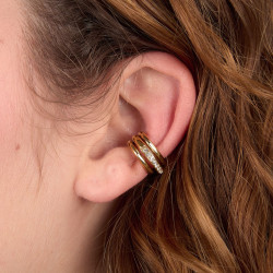 Descrizione: ear cuff in acciaio PVD oro - canna tripla - finitura a specchio e zirconi