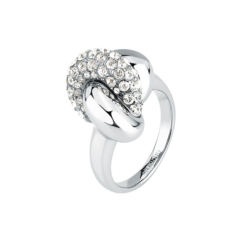 Descrizione: anello in acciaio - centrale a forma di nodo con zirconi pavè