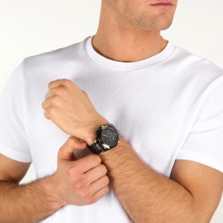 Descrizione: orologio cronometro. Cassa e bracciale in acciaio PVD nero. Vetro minerale. Fondello e corona a vite. Impermeabilità: 10 ATM
